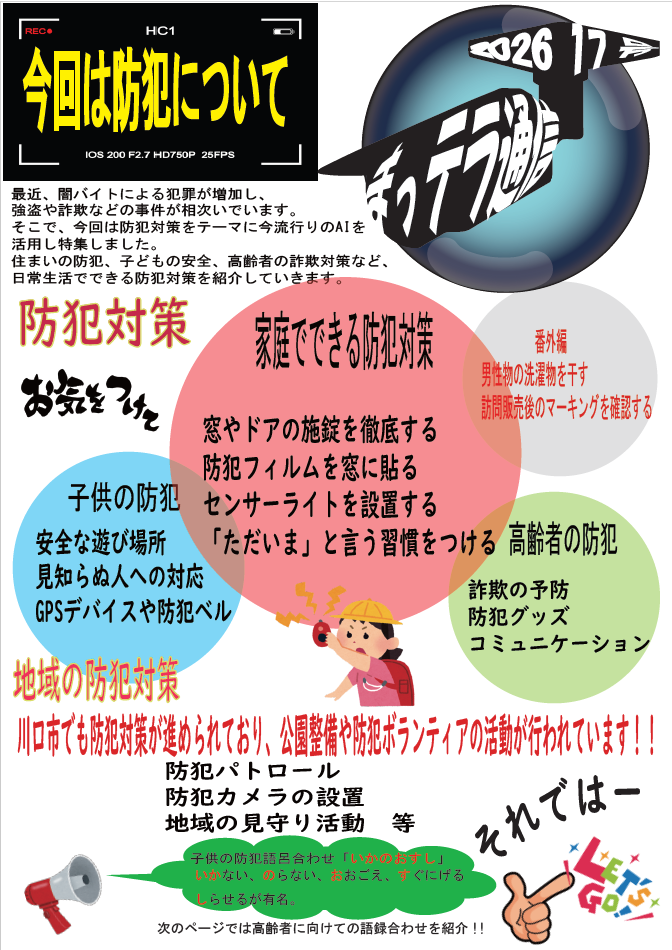 今回の まっテラ通信17号 は、これまでの号とは少し趣向を変え、「防犯」をテーマに、AIとのコラボで制作された特別号となっています。