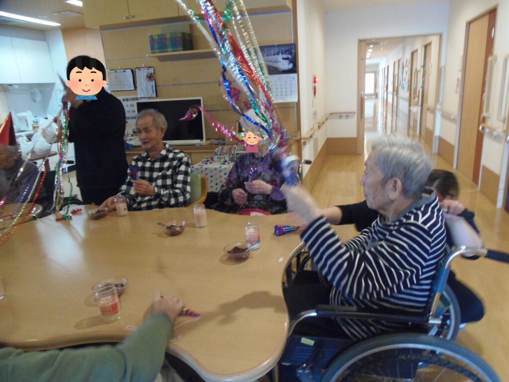 クラッカーでお祝い!!・・・のはずが、大きな音に「怖い!!」と逃げ回る職員も(笑)