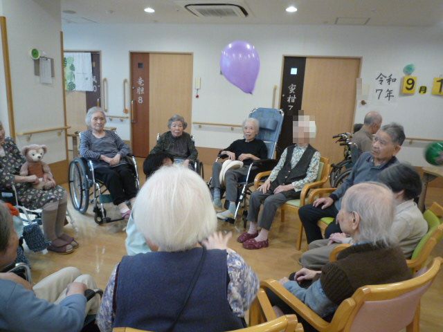 午後は実習生が目標を立てたことを実施する時間でしたが、🧓「勉強なんて後回し!今は遊びましょう!」😆と、ある入居者様が元気いっぱいに声を上げると、場の空気は一気に和やかに。 施設にあった色とりどりの風船を使って「風船バレー」がスタート! そして驚いたのは、いつもはマイペースで穏やかなあの方が、突然立ち上がり、 👵「職員さん、イスを輪に並べて!早く早く!」とテキパキと指示を出し始めたこと。 その勢いに職員も思わずタジタジ…!「はいっ、すぐに並べます!」と慌ててイスを動かす姿に、周囲は笑いながらも感心しきり。 入居者様たちは「待ってました!」とばかりに集まり、皆で円になってバレー!!🏐🎈。 風船🎈がふわりと宙を舞うたびに、「そっちよ!」「あら、私のところに来たわ!」と歓声と笑い声が響き渡り、実習生は汗だくになりながらも大奮闘「介護って、こんなに楽しい時間があるんですね」と感動していました。