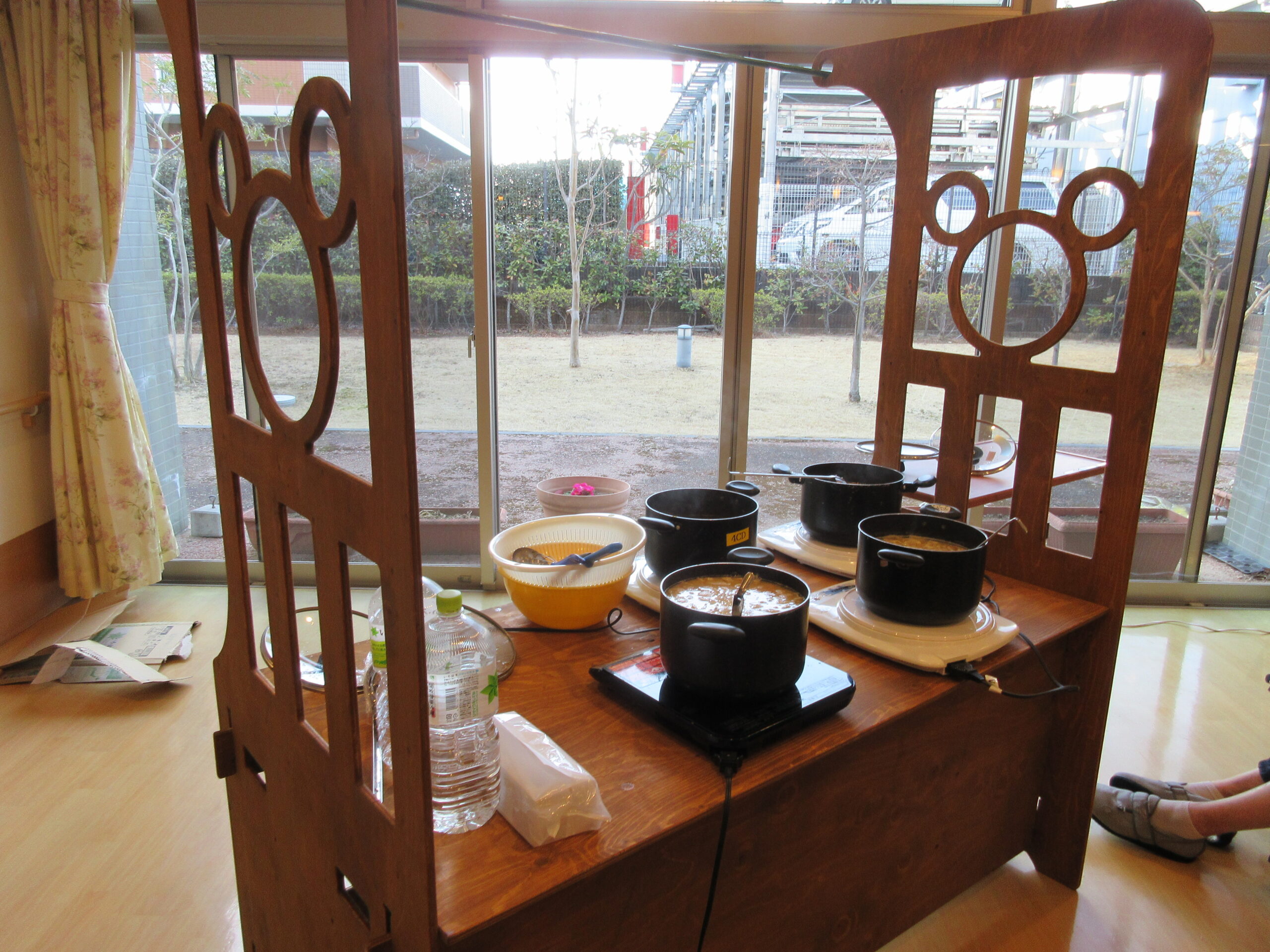 出来上がった豚汁はなんと驚異の鍋4つ分!大量に作られた豚汁のにおいがフロアに広がり職員の方がお腹をすかせてしまいます。お配りすると、 「おいしいね」「体が温まるよ」 といった声があがり、皆さま嬉しそうに召し上がっていました。実際に召しあがったのですが、味がしっかりと染みていて、あったかくてとてもおいしかったです!