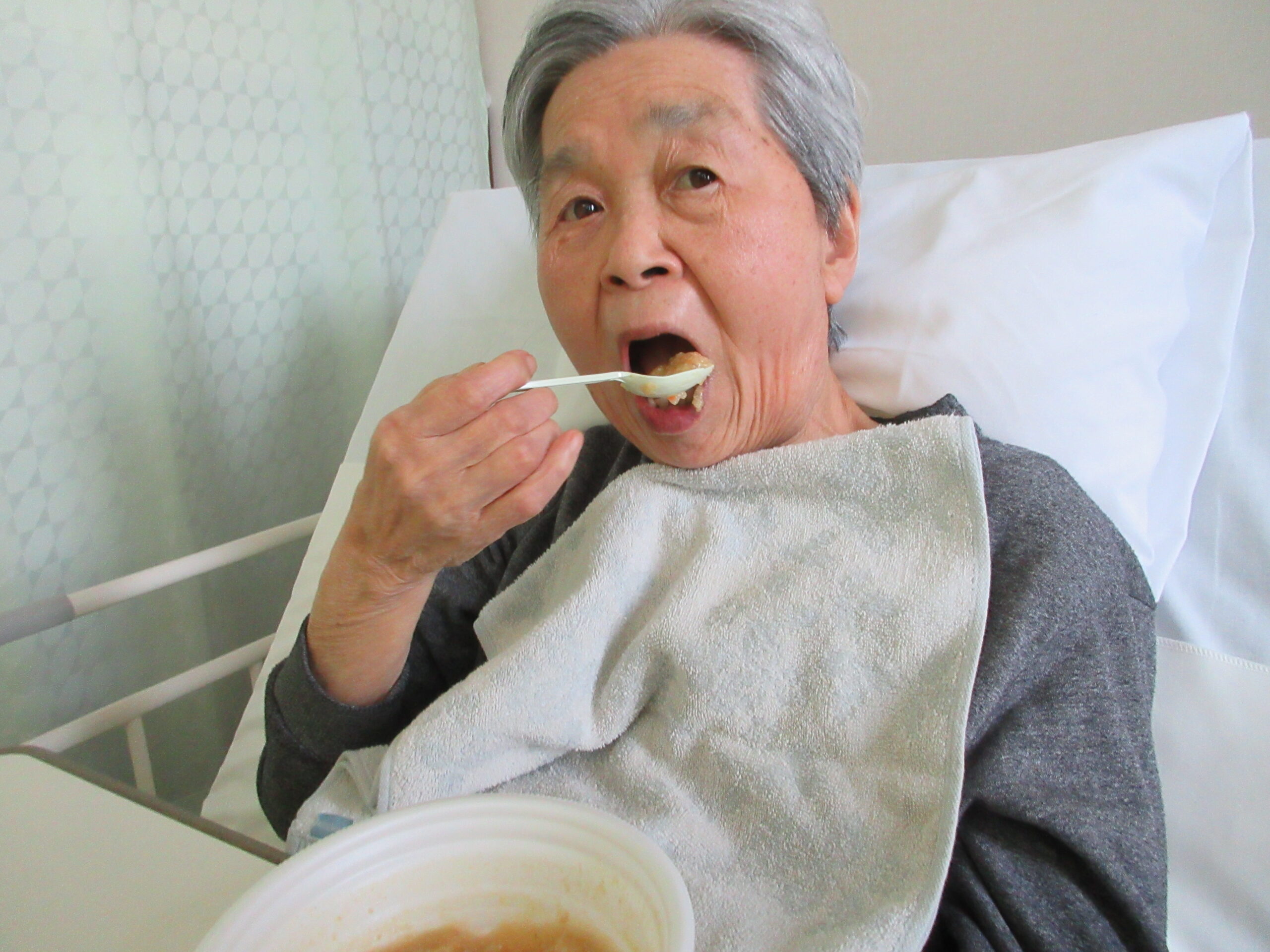 具材は、にんじん・大根・ごぼう・豚肉など、昔から親しまれてきた定番のものや変わり種のさつまいもをたっぷり使用。煮込んでいる間には、「早く食べたい!」といった元気な声が上がりました。ナースさんもお手伝いで参加し、エプロンをつけて気合が入っております。