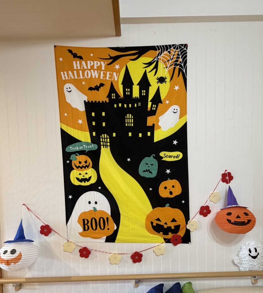 10月に入り、3階AB・CDユニットでは一足早くハロウィンの雰囲気に包まれています!廊下や共有スペースには、カボチャやコウモリ、お化けたちが所せましと登場し、まるで小さなテーマパークのよう✨