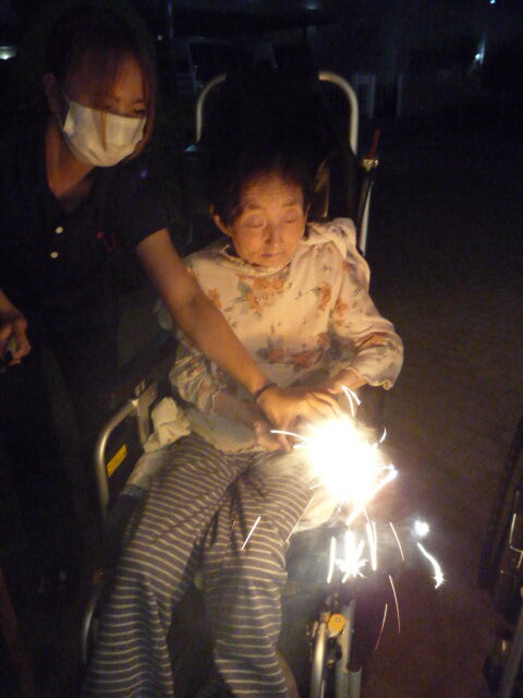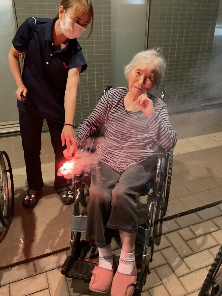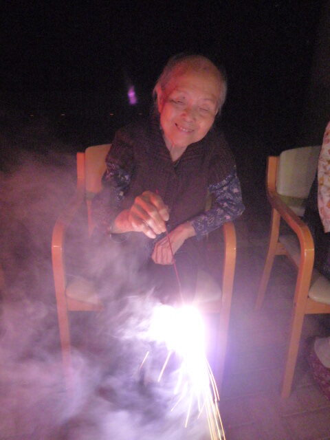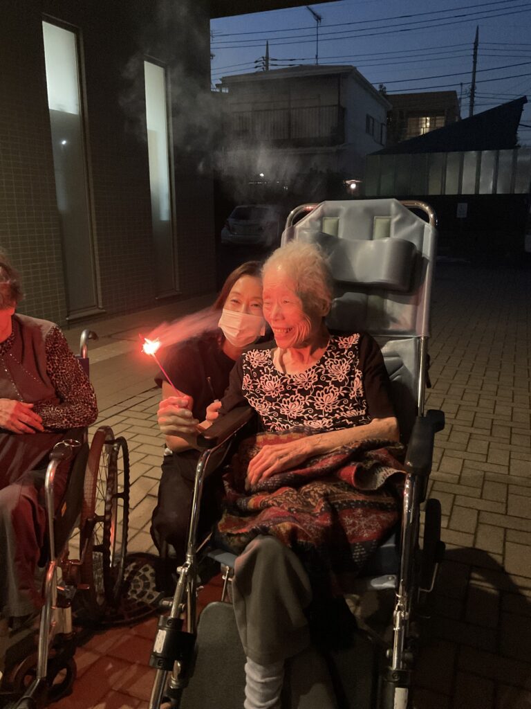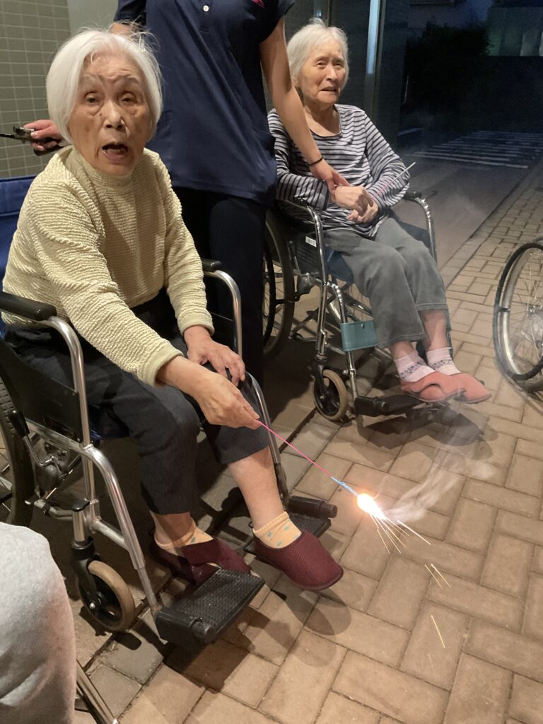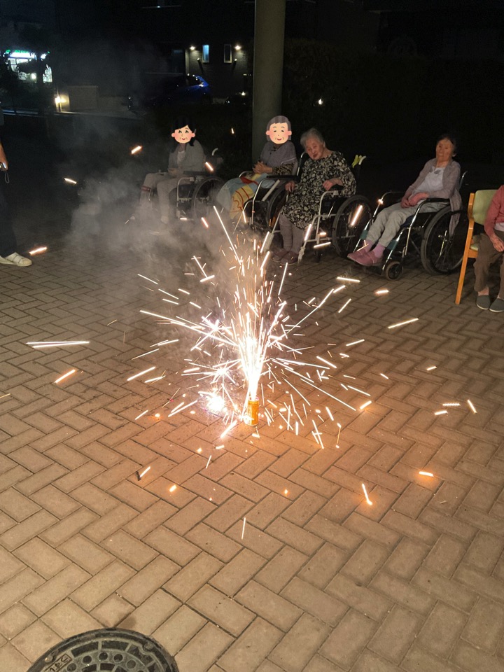 職員も思わず手を止めて笑ってしまうほど、ユニット全体が一体となって楽しんだこの夜。打ち上げ花火こそありませんでしたが、皆様の笑顔と笑い声が夜空に響き渡り、まるで心に打ち上がる花火のようでした。